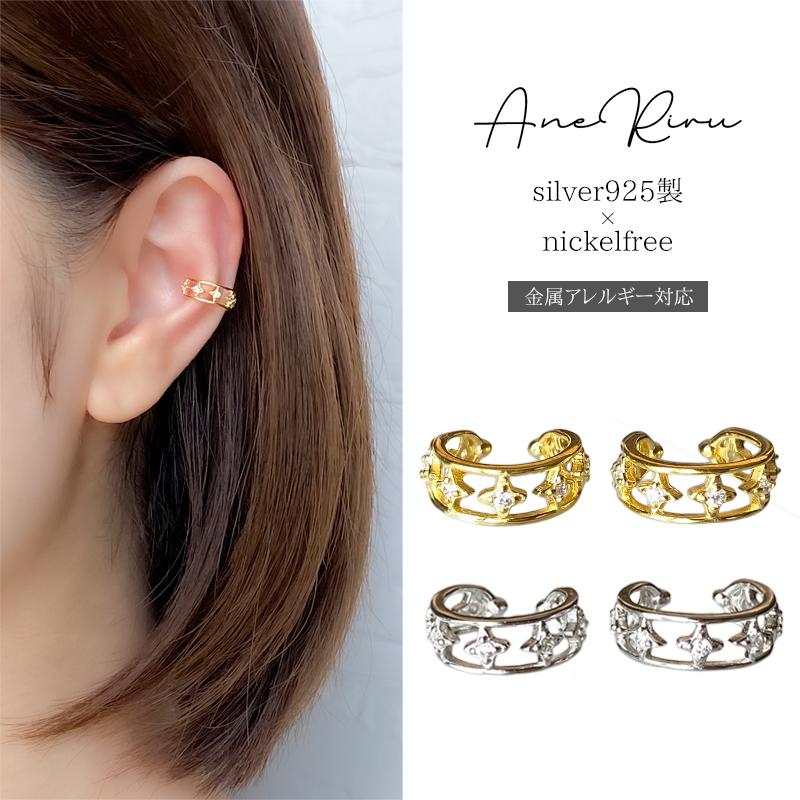 イヤーカフ レディース 金属アレルギー対応 シルバー925 イヤカフ ニッケルフリー 18k コーティング 両耳 星 キラキラ イヤリング 普段使い 20代 30代 40代 50代
