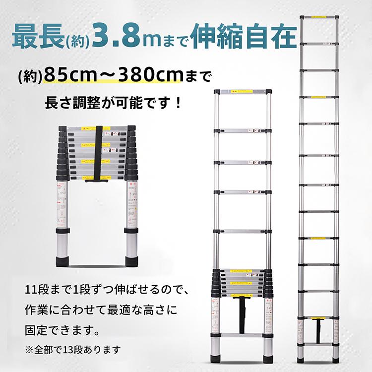 安全ロック 搭載 滑り止め付き 軽量 スーパーラダー 耐荷重 150kg スライド式 高所作業 大掃除 枝打はしご 洗車 車載 ステップラダー 足場 3m80cm 380cm 店舗 倉庫 電球 照明 取り替え アルミニウム製 踏み台 アルミ作業台 工具 足場 頑丈 洗車 雪おろし 掃除 窓拭き スライド ガーデニング 日曜大工 DIY ラダー アルミ梯子 ロフトはしご 避難用はしご 防災 伸縮ハシゴ 持ち運び コンパクト 折りたたみ 敬老の日 父の日 母の日 クリスマス プレゼント ギフト