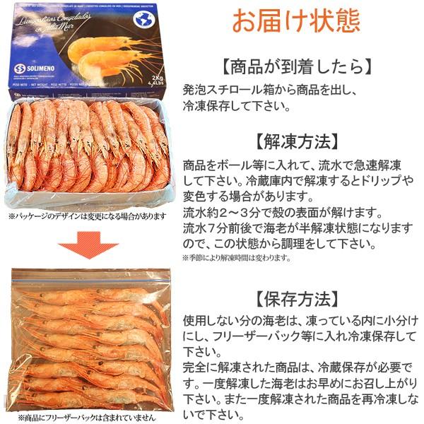 がってん寿司の赤海老(あかえび)2キロをお届け!<商品詳細> 名 称:赤海老内容量:2kg原材料:赤海老、亜硫酸ナトリウム原産地:アルゼンチン<保存方法> 冷凍(-18℃以下)で保存<賞味期限> お届け後 約30日※解凍後はお早めにお召し上がりください。<販売者>株式会社アールディーシー埼玉県熊谷市石原2-1<配送方法> ヤマト運輸 冷凍便