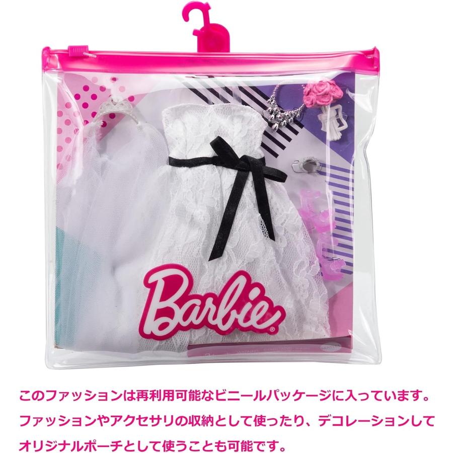 新品。中身の見えない梱包にて発送いたします。●ブライダル衣装一式がセットになっています。結婚式の日のさまざまな物語を楽しむことができます。美しい白いウェディングドレス、ベール、そして特別なルックに仕上げる4つのブライダルアクセサリーを着せて楽しみましょう。このファッションはリサイクルプラスチックから作られた生地を使用していて、再利用可能なビニールパッケージに入っています。パッケージはファッションやアクセサリの収納として使ったり、デコレーションしてオリジナルポーチとして使うことも可能です。