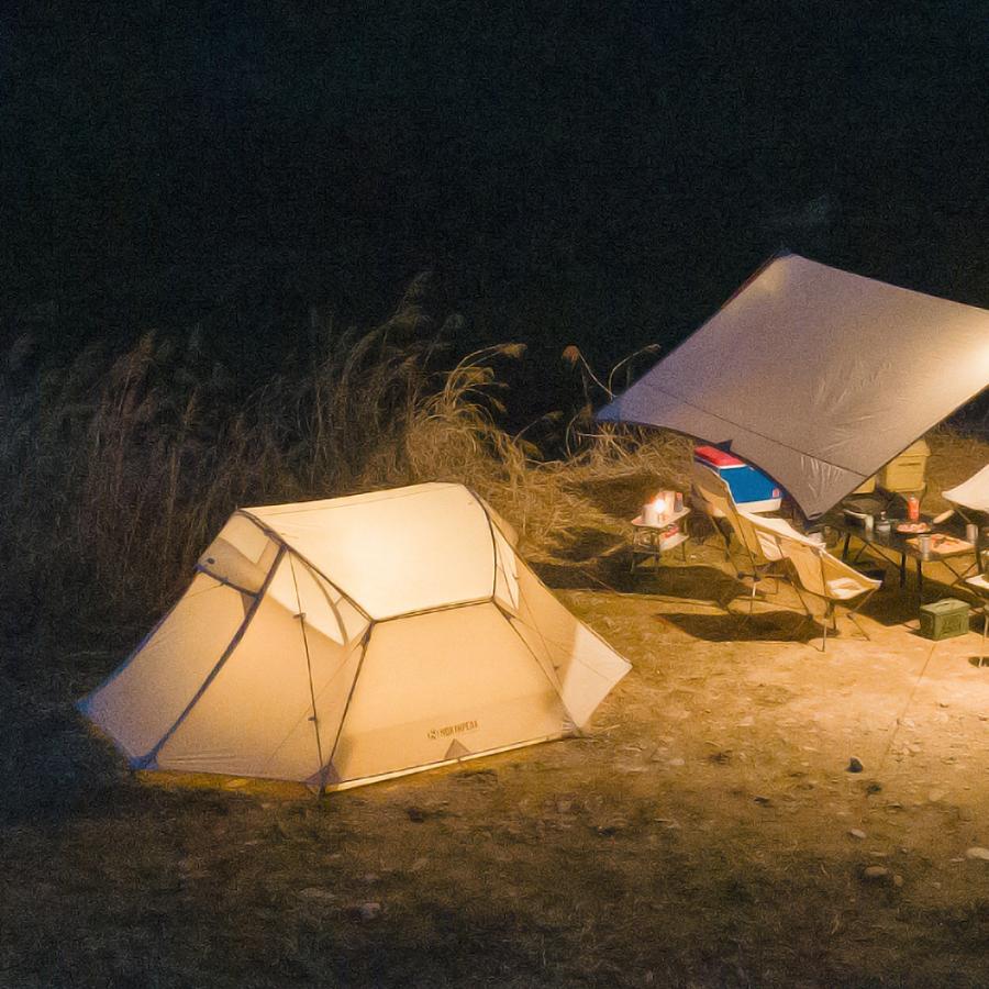 生地や形状などの計算されたフォルム昼間は存在感を発揮、夜になればテント内の光がテントのシルエットを映し出します。