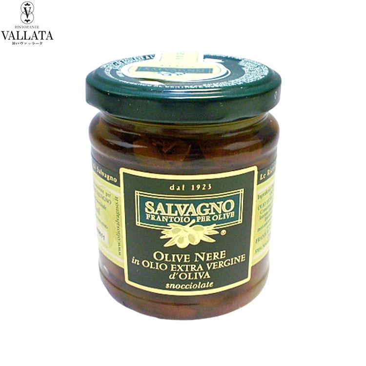 ブラックオリーブの実 オイル漬け 種なし olive オリーブの実 瓶詰め大人気の「サルバーニョ」のオリーブの実。漬けられているオイルはもちろんサルバーニョ♪種抜きでギッシリと詰められています。無農薬栽培で丁寧に育てられたまろやかな味のオリーブはどんなお料理にも合いますね。オイルごと使ったお料理にも最適です。