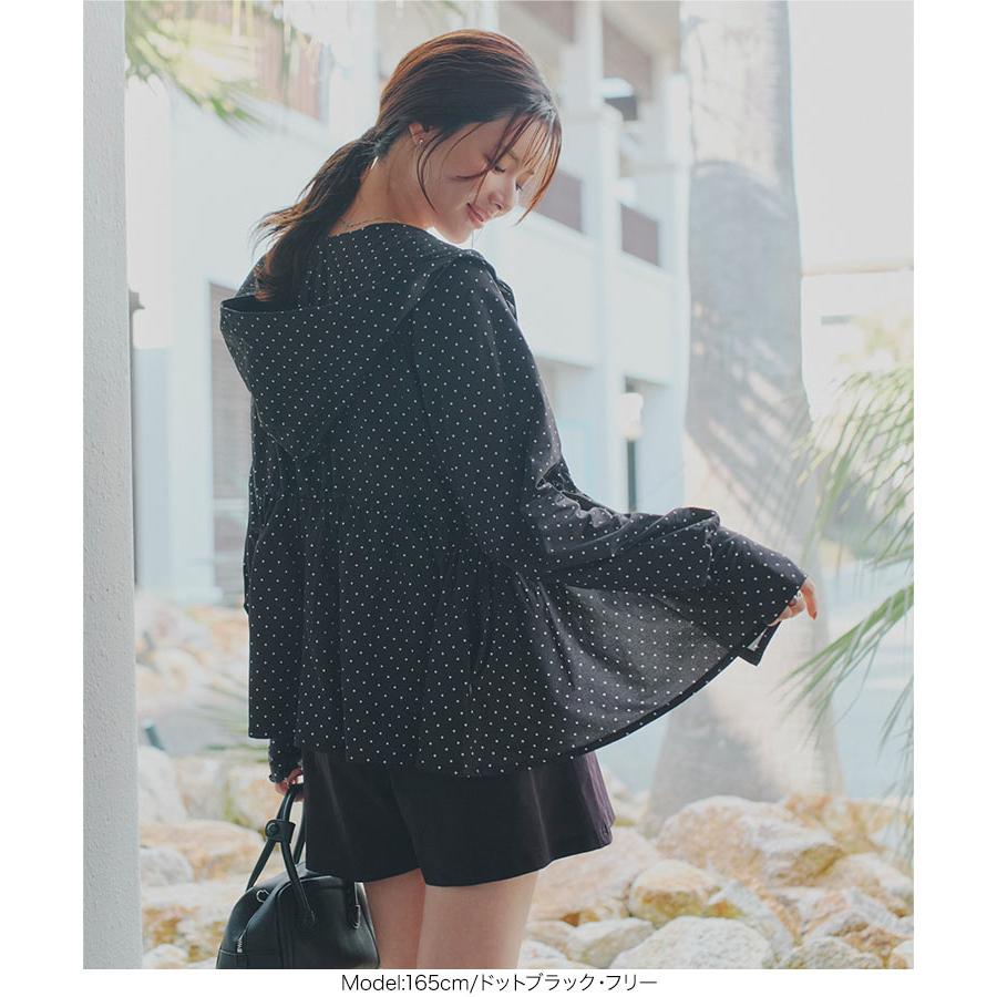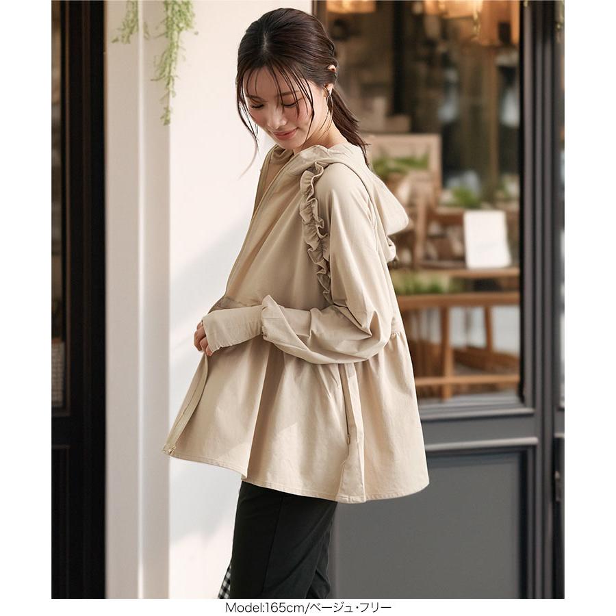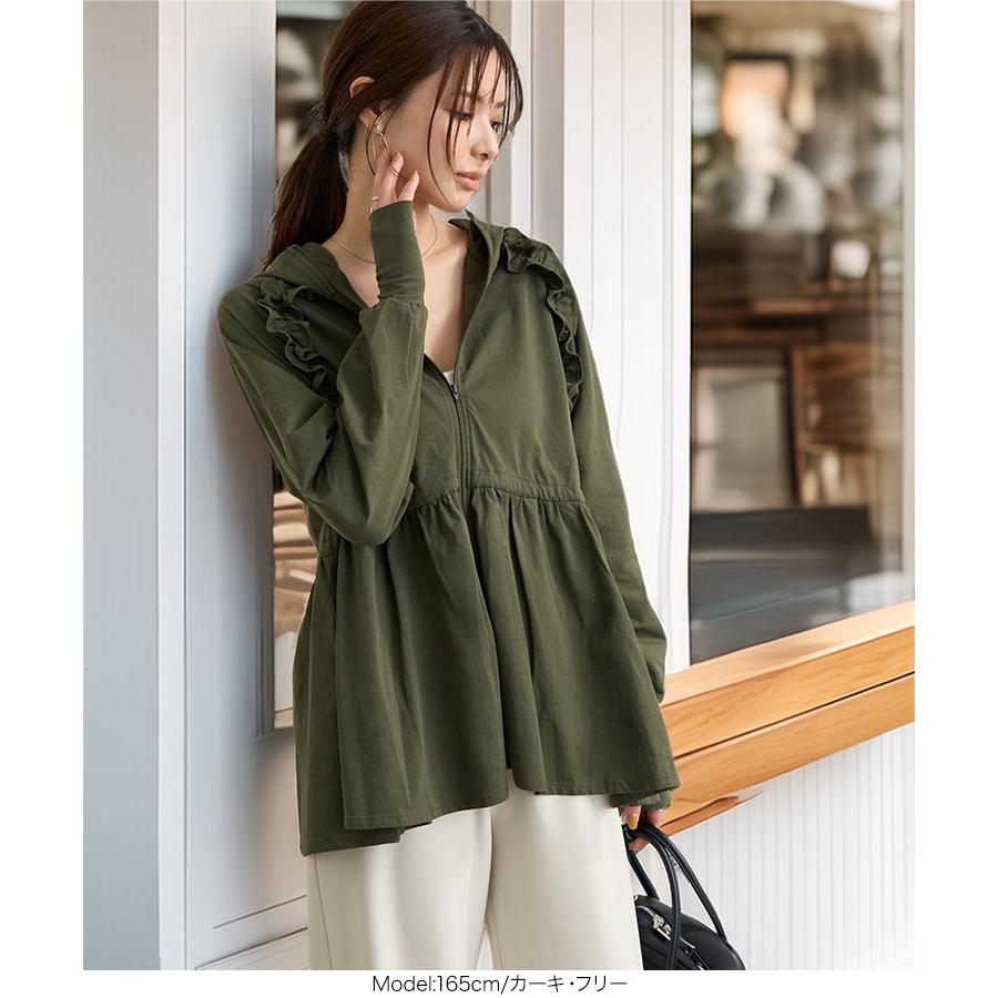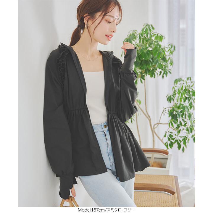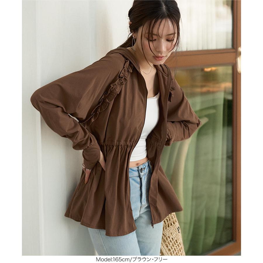 [ ラッシュガード ] 指穴付きウエストストリング肩フリルパーカー