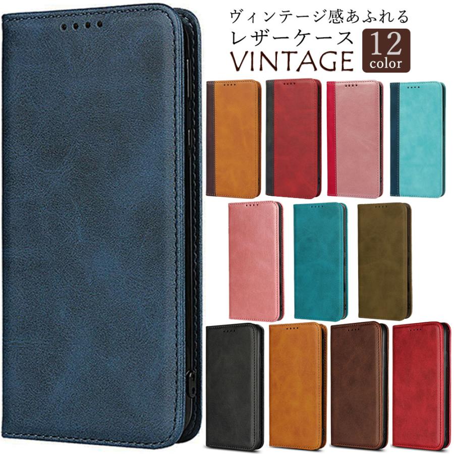 ●ヴィンテージ感溢れるPUレザー素材の手帳型ケース。