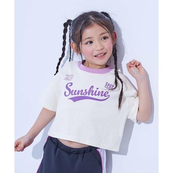 tシャツ 綿100% デビラボ ガールズ クロップド丈 プリント半袖Tシャツ キッズ 子供服 女の子