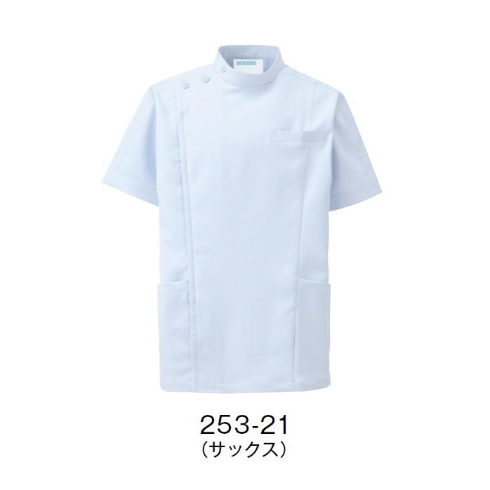 253-20 カゼン ナースウェア ケーシー ジャケット 診察衣 トップス 男性用 ストレッチ性抜群 制菌 工業洗濯可 制菌 透け防止 吸汗 制電 防汚 携帯PHSポケット付き KAZEN 医療 看護師 介護 整体師 医者 医師 歯医者 白衣ネット