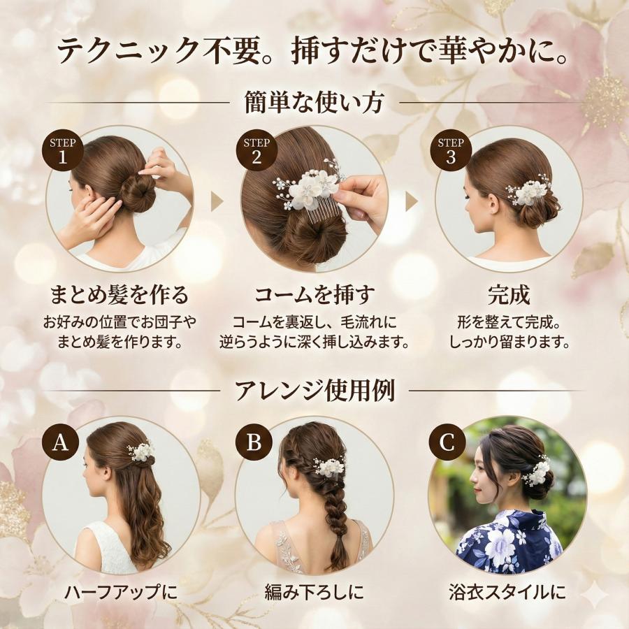 ふんわりした白のお花がとってもかわいいパールコーム♪