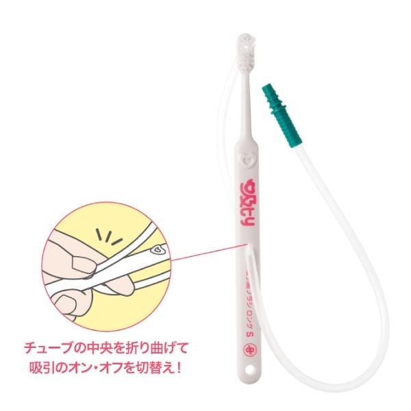吸引器につないで、お口の汚れを吸い出します材質:ポリプロビレン(柄)ナイロン(毛)耐熱温度:約80度全長約180mm重量:20g1本やわらかめ/ピンク※歯ブラシの色はピンクのみです。吸引器につなげて使用する歯ブラシです。