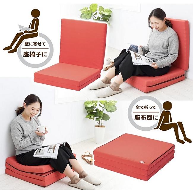 睡眠時に加え、畳んでテレワーク時の座椅子、組み方によっては背もたれ付きのソファにも使用できます。
