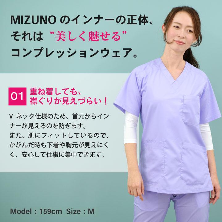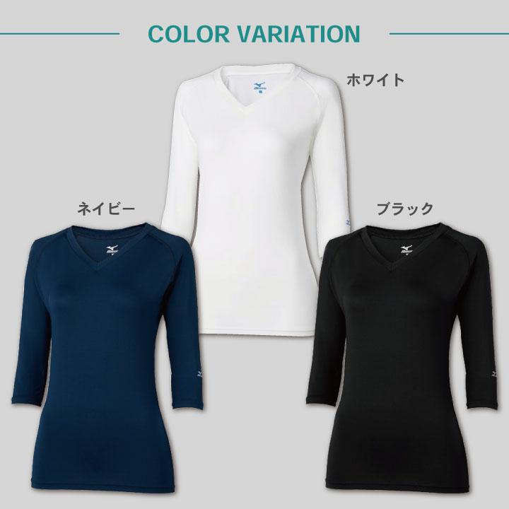 七分袖 Vネック 汗をかいてもさらっと吸収!ミズノ MIZUNO スクラブ インナー スクラブインナーシャツ レディース アンダーウェア ストレッチ 吸汗 速乾<br>