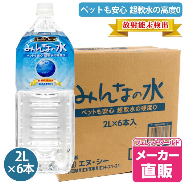 みんなの水2L1ケース 2リットル6本入り 1本あたり通常¥357が¥346とお買い得! 放射能未検出 フェレット 鼬 ピュアウォーター 水 飲料水 安全 軟水 超軟水 硬度0 ペットの飲料水