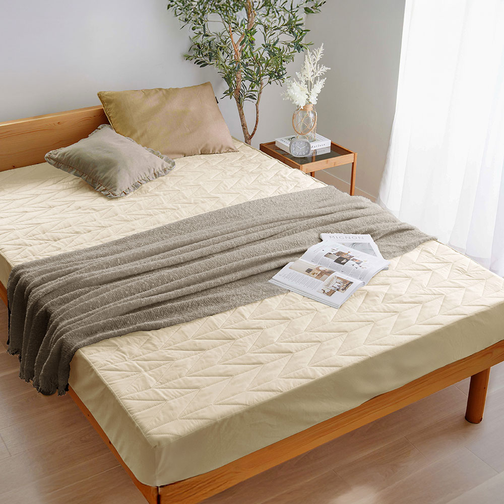 ■品質/表地・マチ:ポリエステル、中わた:ポリエステル、裏地:不織布(ポリウレタンラミネート加工)■サイズ(幅×奥行×高さ/約cm)/シングル :100×200×30■洗濯機洗いOK(ネット使用)敷パッドと一体型のボックスシーツ。防水加工生地と抗菌防臭生地で介護用・お子様用・ペット用におすすめ。おしゃれなヘリンボーンキルトは熱圧着キルトのため、キルト部分に爪などがひっかかりにくい。