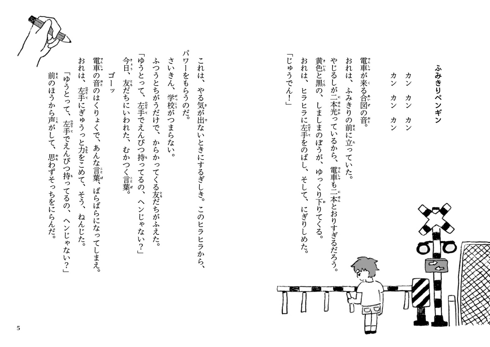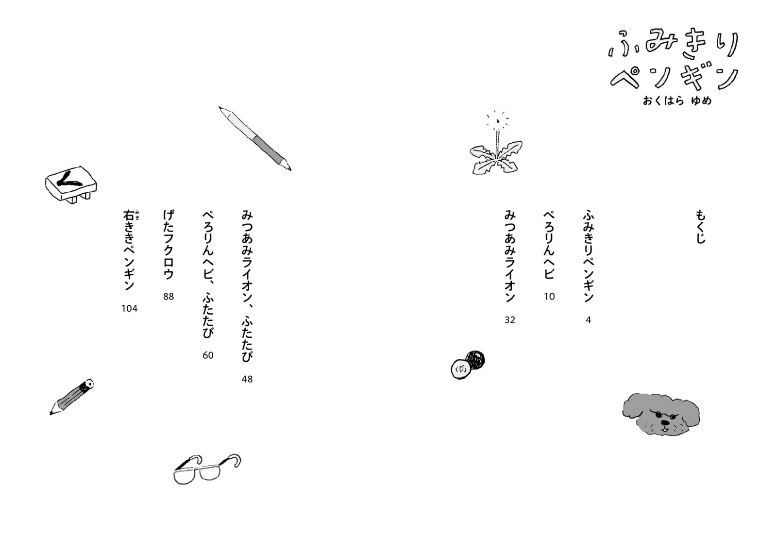 小学3年生のゆうとは、ふみきりでペンギンの話を聞く。るりは、白いヘビのうわさを確かめたい。ななこは、鏡のなかのライオンと会う。そうすけは、天気占いをするフクロウが見える。「ふつうってなんだろう?」という不安な気持ちにたいして、決めつけず、気にせず、それぞれの子どもたちの自分らしさを肯定する。おくはらゆめの作絵による、やさしい物語。版元を超えて活動する「らいおんbooks」編集による読み物作品の第二弾。