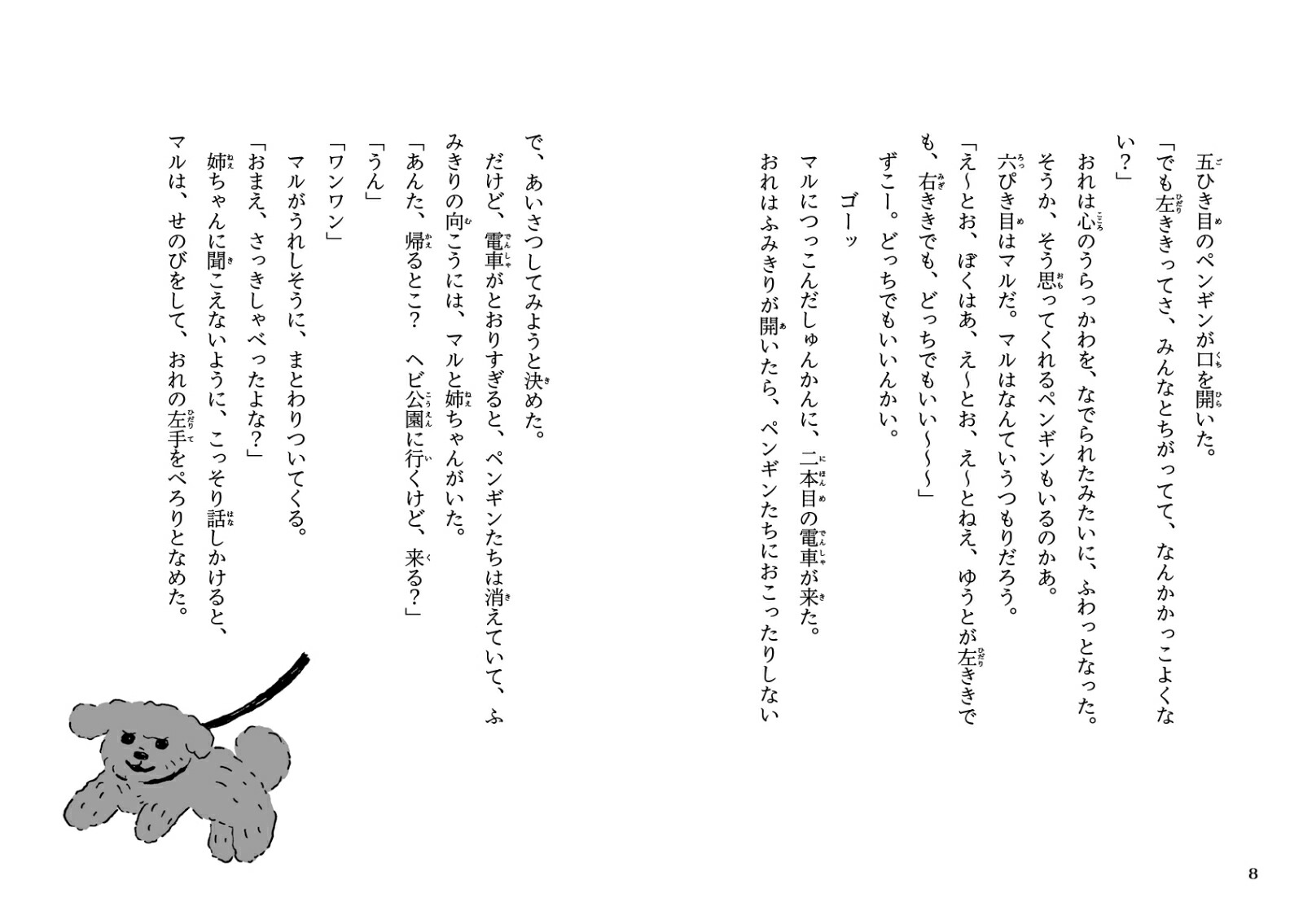 ゆうとはペンギンの話を、るりは白いヘビのうわさを、ななこは鏡のライオンを、そうすけはフクロウの占いを、聞いたり、見たり、かんじたり…。「ふつうとは?」を決めつけず、それぞれの自分らしさを肯定する、ある町の小学三年生の物語。