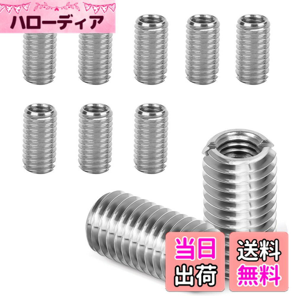 インサートナット 10個 ネジ変換アダプター 内径M6*1 外径M8*1.25 長さ15mm 割溝タイプ エンザート ステンレス鋼 一行溝 埋め込みナット ネジ山補修 減速ナット