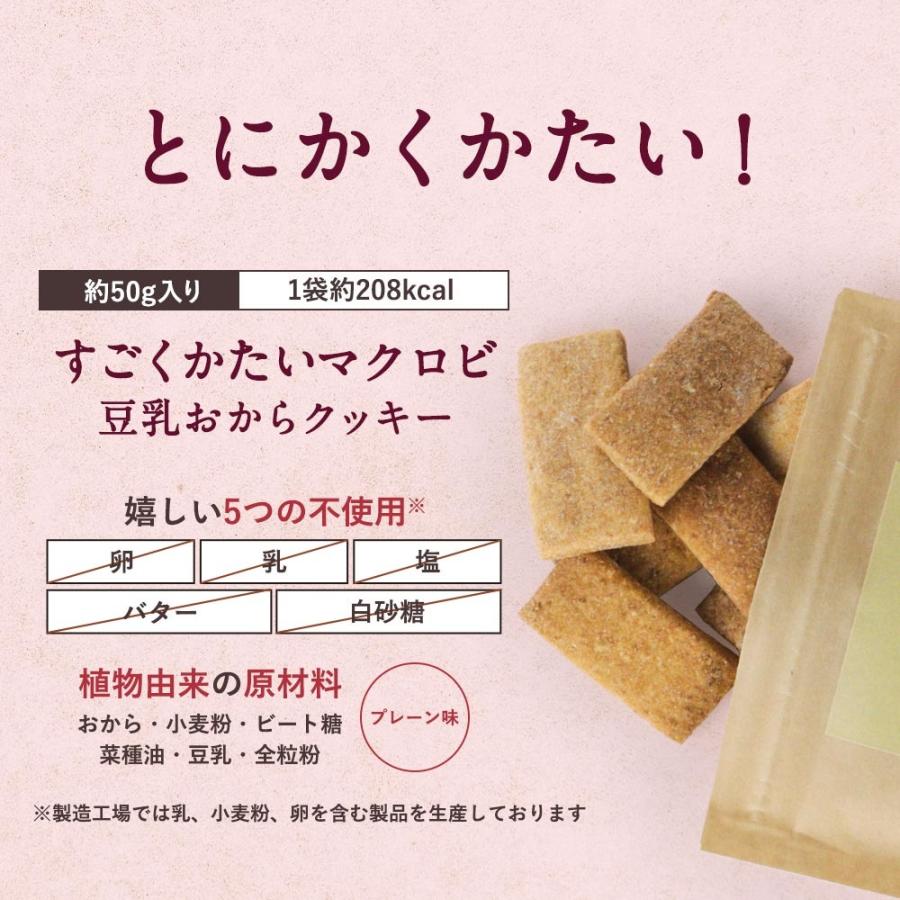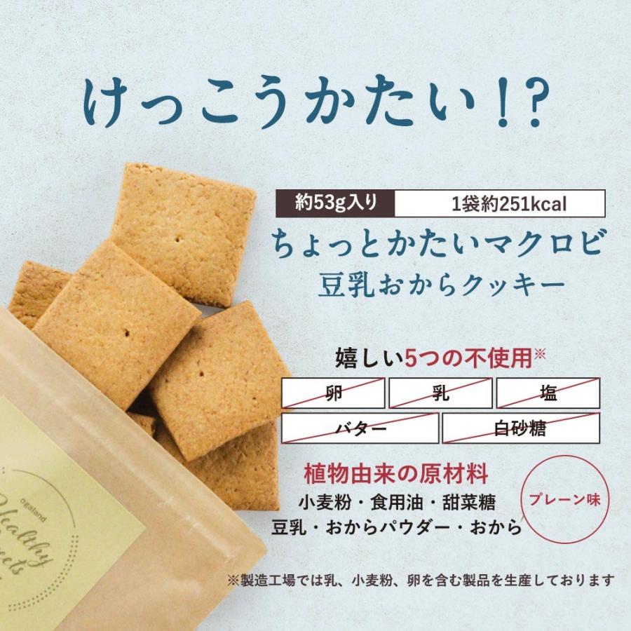 【名前/内容量/※原材料】■すごくかたいマクロビおからクッキー 50g■米粉とてんさい糖の豆乳おからクッキー 39g■イヌリン入り ソフト豆乳おからクッキー 2種ミックス 57g■すごくかたい!6つのゼロ 豆乳おからクッキー 44g■ちょっとだけかたい マクロビ豆乳おからクッキー 53g■乳酸菌豆乳おからクッキー 50g■(おまけ)ルイボスティー 5包■(おまけ)Sururiレモン風味 5包※原材料は商品ラベルに記載