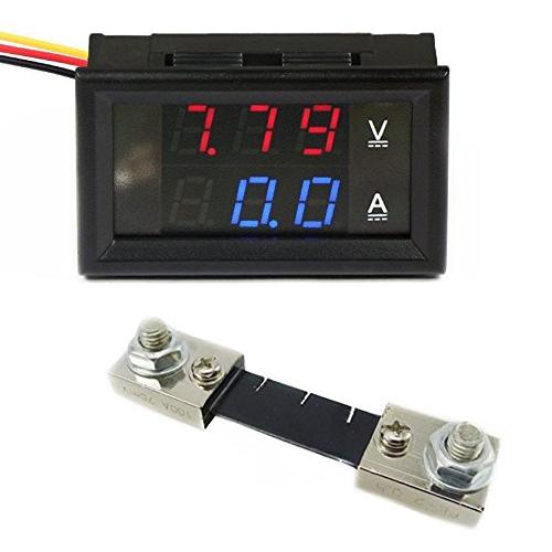 EasyWordMall 3線 2 in 1 (赤/青)デジタル電圧計電流計 赤青 DC 4.5-30V/100A シャント 抵抗 (分流器) 付き