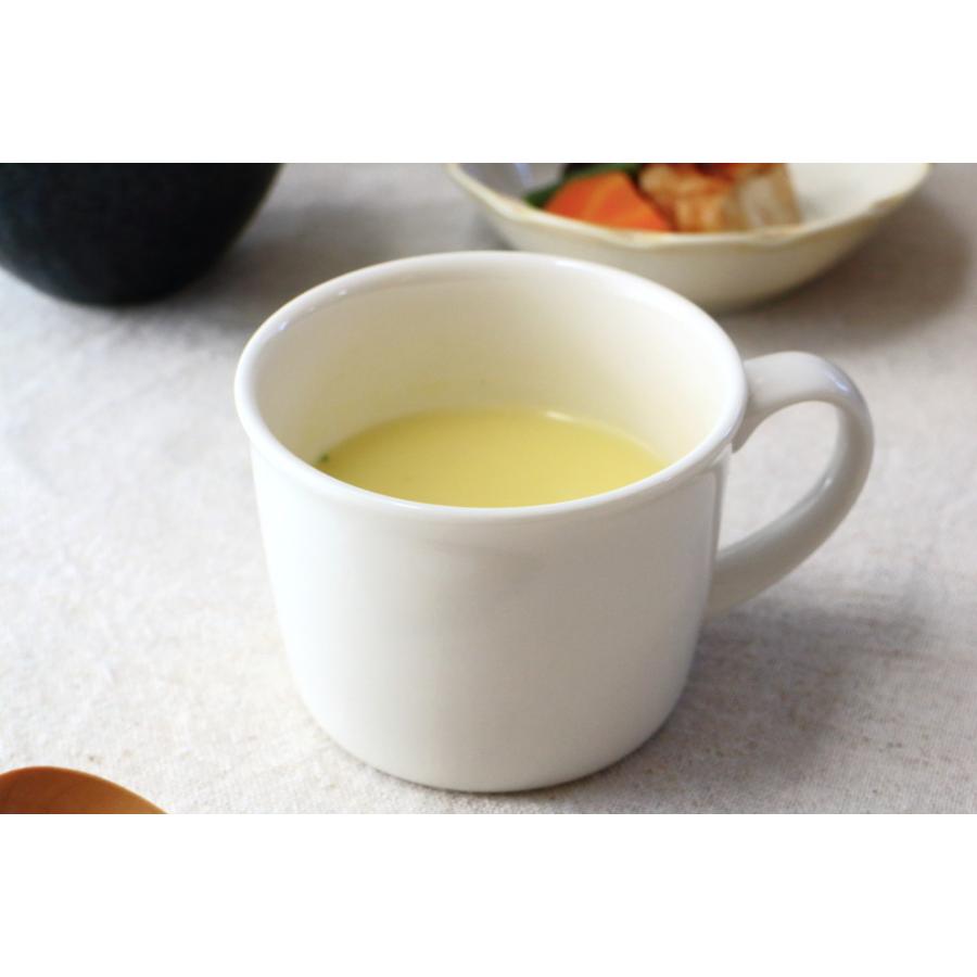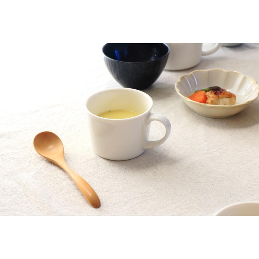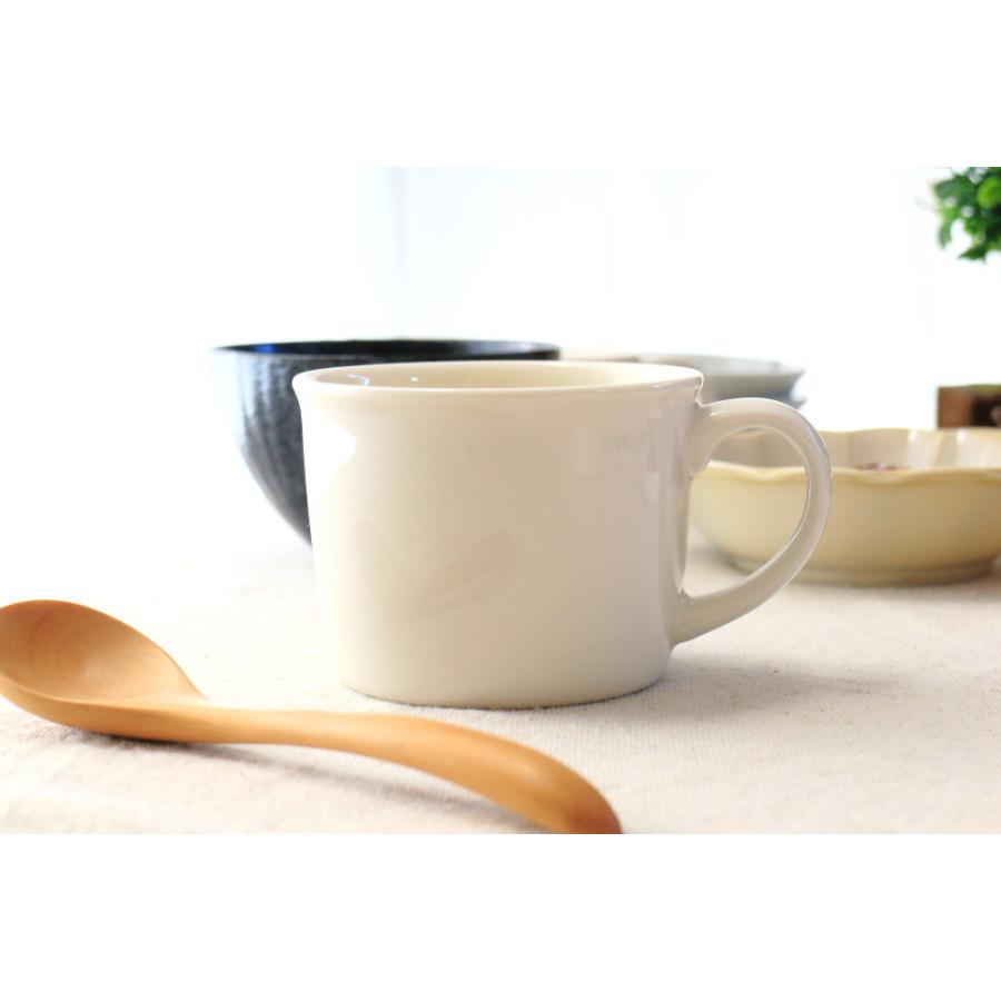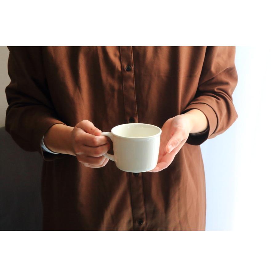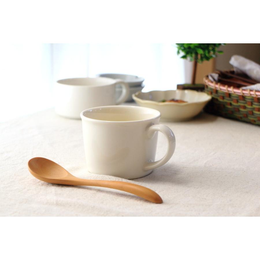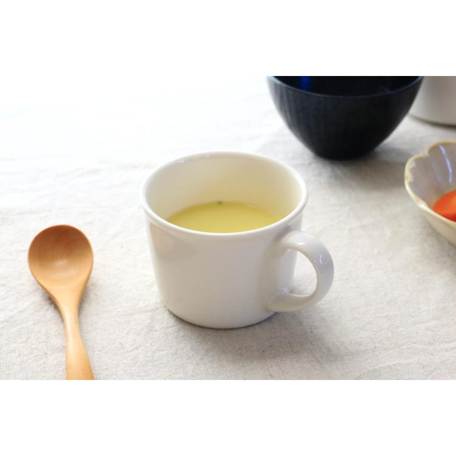 優しいオフホワイトの色合いで食卓に馴染みやすく、心も体も温まるスープカップです。