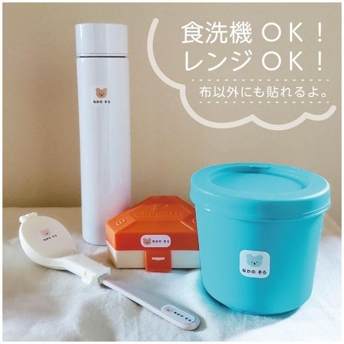 ■布以外にもコップやお弁当箱にも貼れる万能シールです。