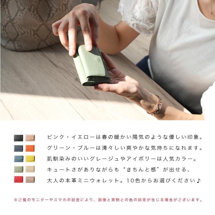 ピンクやイエロー、グリーンといったパステルカラーのシュリンクレザーを使用したキュートさがありながらも”きちんと感”が出せる、大人のミニウォレットです。