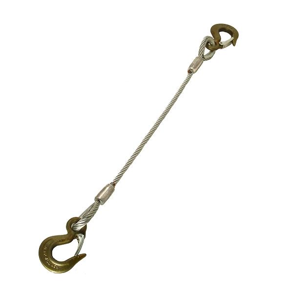 使用ワイヤロープ 6×24 A種ロープ径9mm 長さ3.0m 両側コース両側フック付鍛造フック 0.5tハズレ止め金具付き安全荷重 500kg(ワイヤーの安全荷重は678kg)
