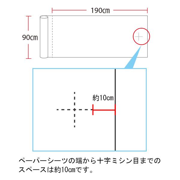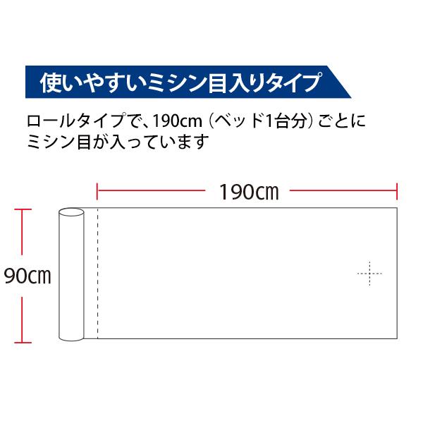 ロールタイプのペーパーシーツです。190cmごとにミシン目が入っています。シートは50枚分になります。片面がラミネートコーティングの防水タイプです。