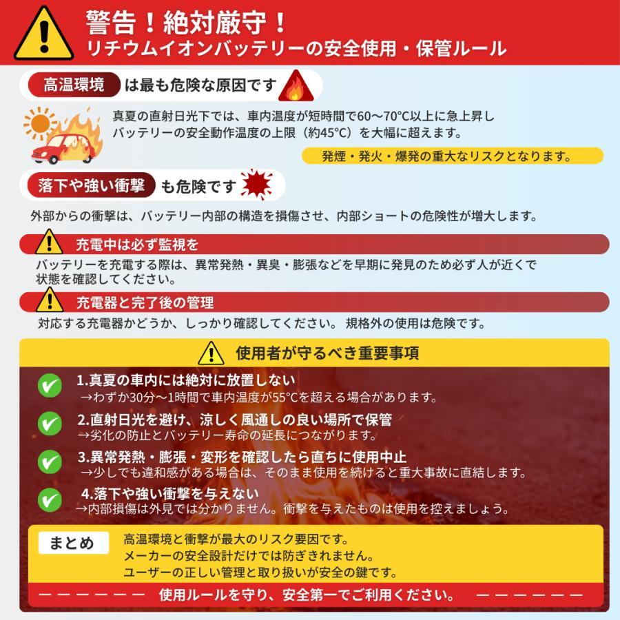 【特徴】制御基板には充電を制御する保護内部を搭載。保護回路がバッテリー内部を壊れないよう守ります!