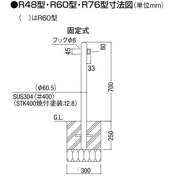 ■柱の太さ:Φ60.5 ■高さ:700mm ■重量:4.3kg ■仕様:固定式 片フック ■材質:スチール