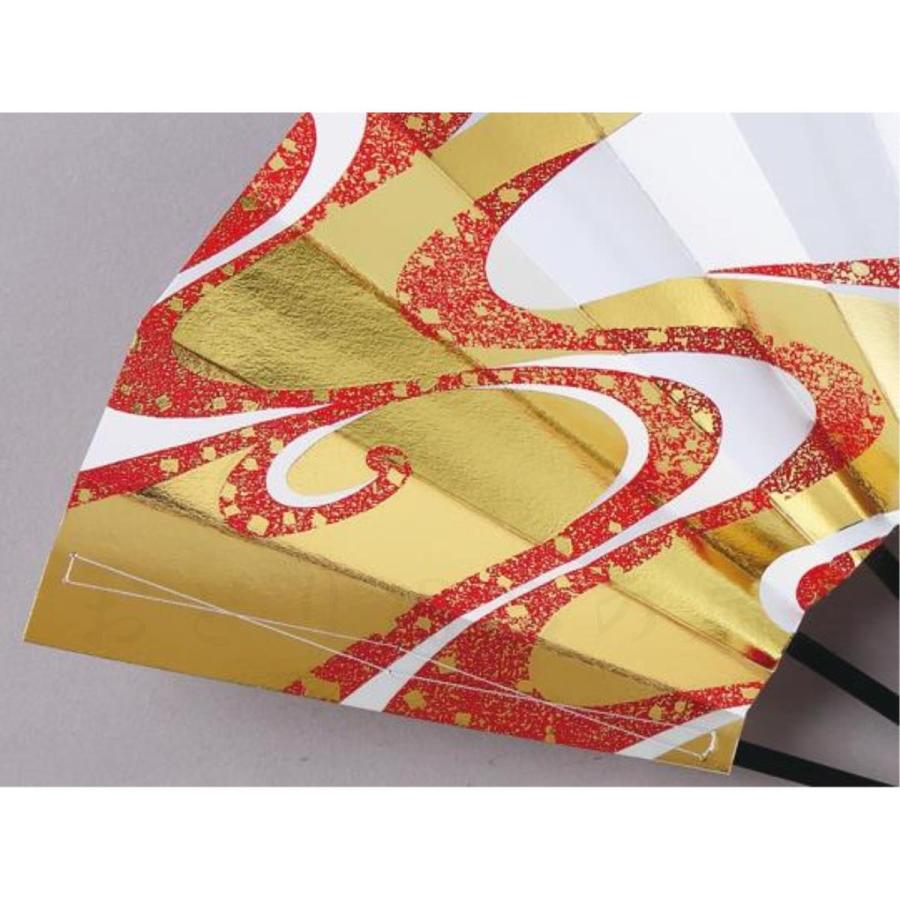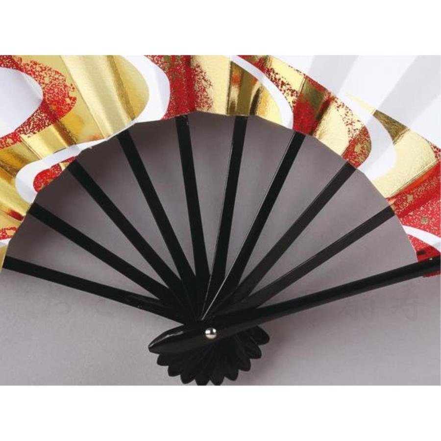 長さ/約29cm。広がり/約50cm。扇骨/黒塗骨。扇面/両面同じ柄。9寸5分。標準的なサイズの舞扇子です。日本製(国産京扇子)。扇箱等は付いていません。親骨には重さのバランスを取るためのおもりが埋め込んであります。ぎりぎりまで値引きしてありますが、国産(京都)の良い品です。日本舞踊の小道具としてだけではなく、お祭り、和風の飾り、飾り扇子、練習用、イベント用、よさこいなどにもどうぞ。扇箱がご入り用の際は、舞扇子・その他の扇>扇台 扇袋 扇箱 各種 からどうぞ