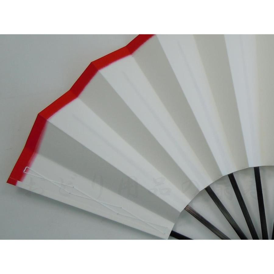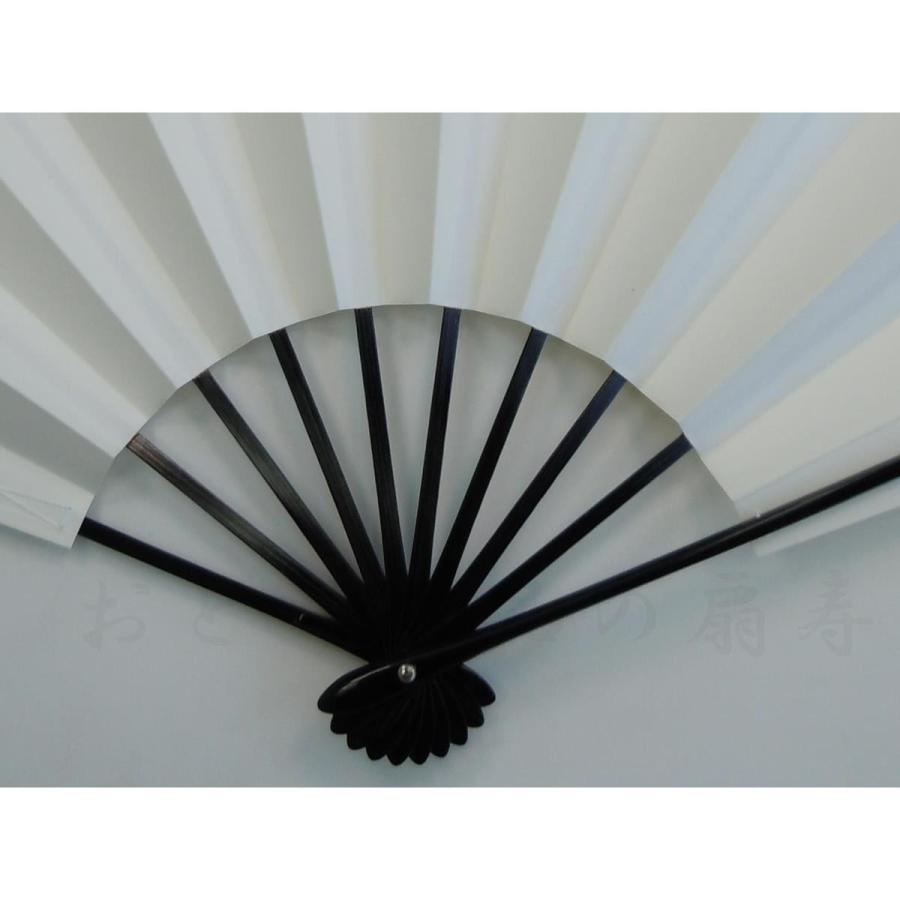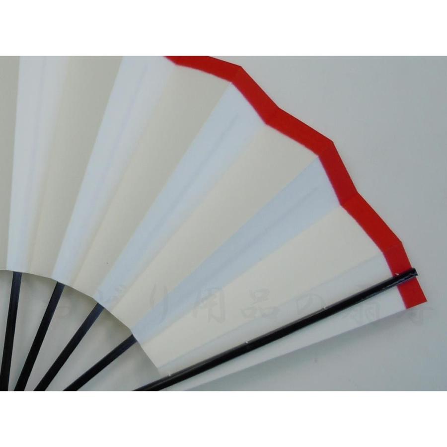 大型の尺寸舞扇子 白地天紅です。長さ/約30cm。広がり/約53cm。扇骨/黒塗。扇面/両面同じ柄。尺寸。通常より大型の尺寸舞扇子です。日本製(国産京扇子)。扇箱付きです。親骨には重さのバランスを取るためのおもりが埋め込んであります。ぎりぎりまで値引きしてありますが、国産(京都)の良い品です。日本舞踊の小道具としてだけではなく、お祭り、和風の飾り、飾り扇子、練習用、イベント用、よさこいなどにもどうぞ。
