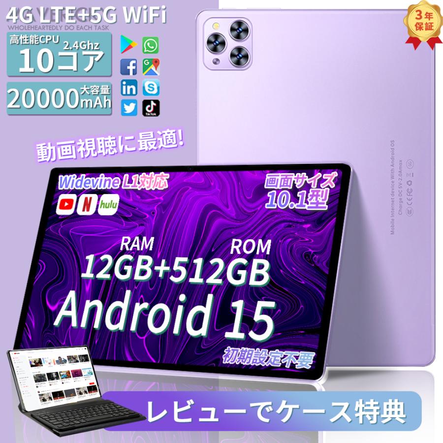 新発売 Android15 タブレット PC 本体 wi-fi 5G 10.1インチ IPS GPS 電話 軽薄型10コア 2.4 Hz 16+512GB 在宅勤務 ネット授業 コスパ最高 8点セット 誕生日 安い