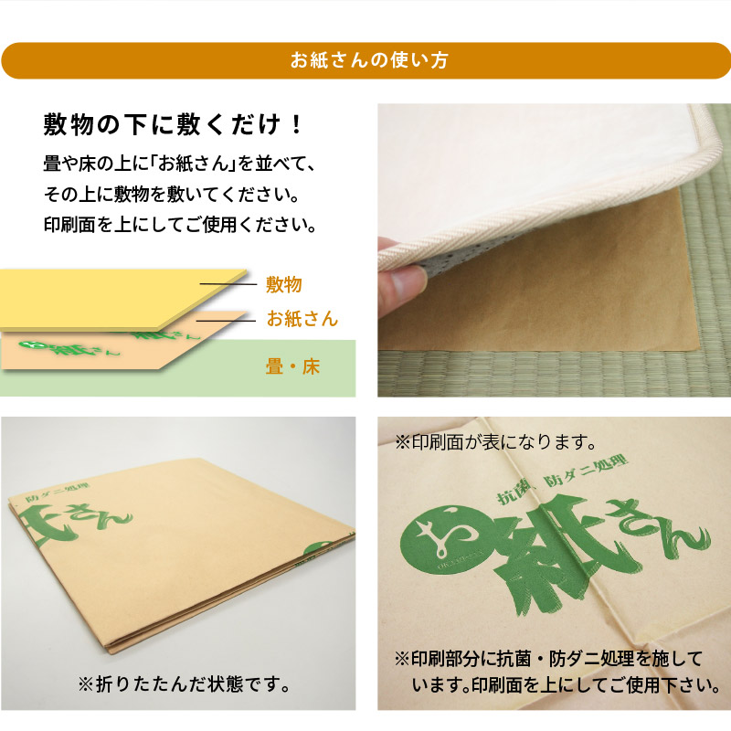 「お紙さん」は薬品・薬剤を使用していますが安全で通気性のよい上質クラフト紙を使用。敷くだけで、床下からのすきま風をシャットアウト。紙独自の保温性を発揮します。