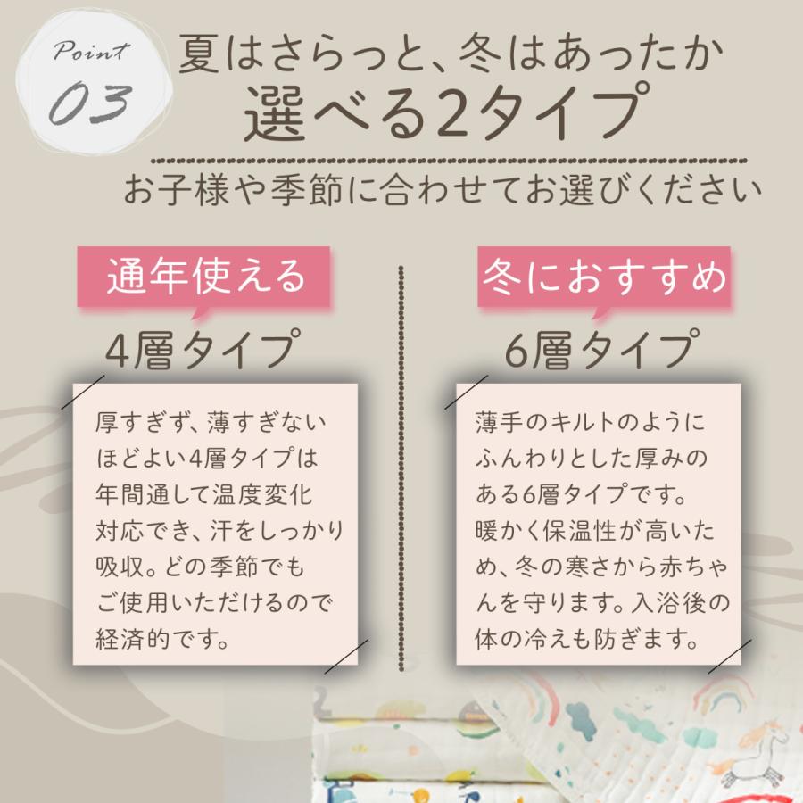 6層→ふっくらとした厚みがあるので冬や湯冷め防止としておすすめです。