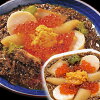 海の食材「あわび・うに・いくら・ほたて・めかぶ・数の子」を ふんだんに使用した「海のお宝」が一堂に会したまさに「海の宝石箱」と言える逸品です。ご飯にかければ、贅沢な海鮮丼が完成します。