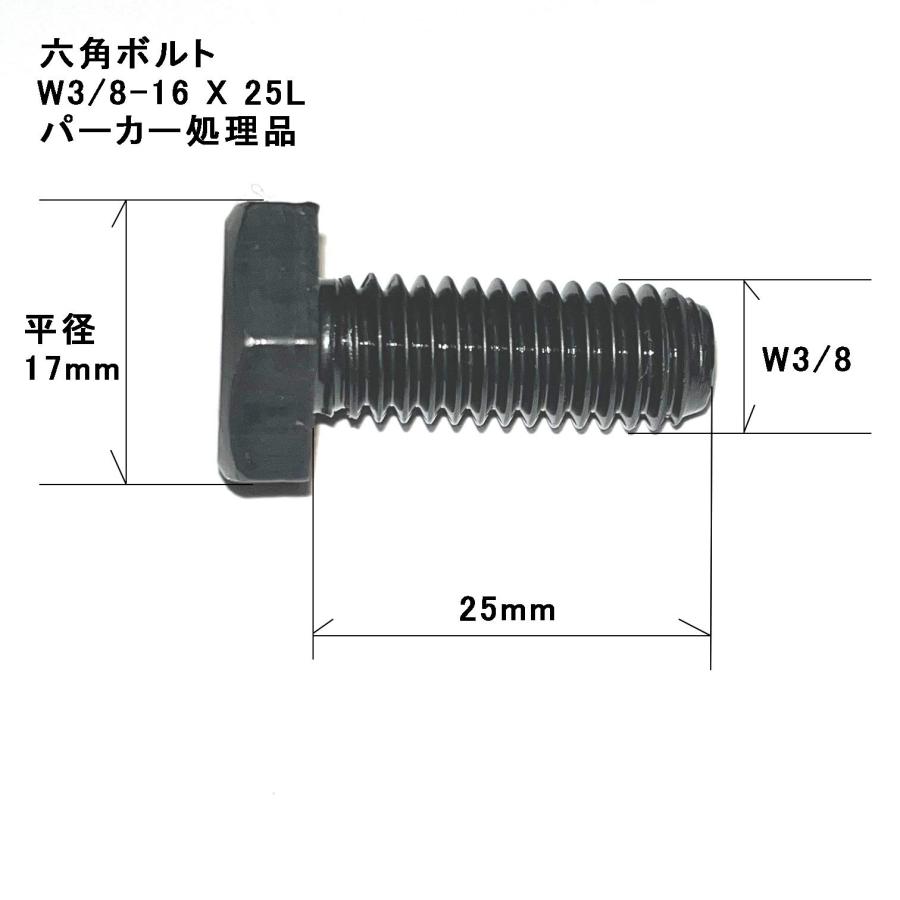 ベース商品(ボルト)は高品質な日本製((株)市川鋲螺製作所製)の六角ボルト(カットボルト) W3/8-16山 X 25L(首下) にパーカー処理を施してあります。