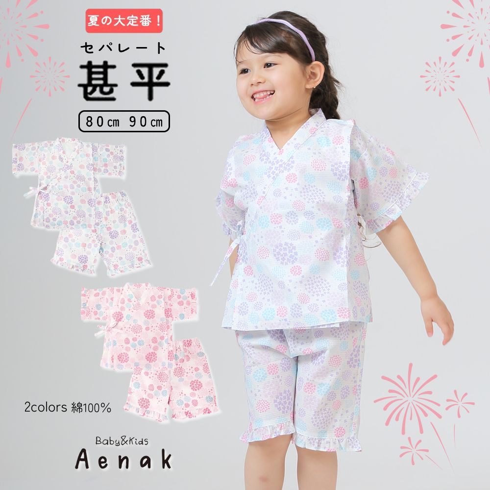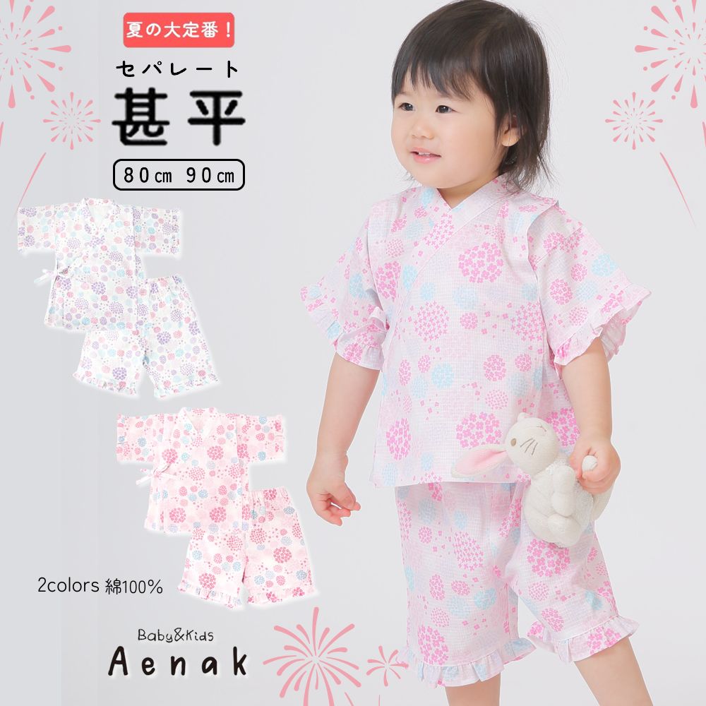 商品名 甚平 じんべい セパレート ベビー 赤ちゃん 女の子 浴衣 ゆかた 紫陽花 あじさい アエナック Aenak ピンク パープル 80 90