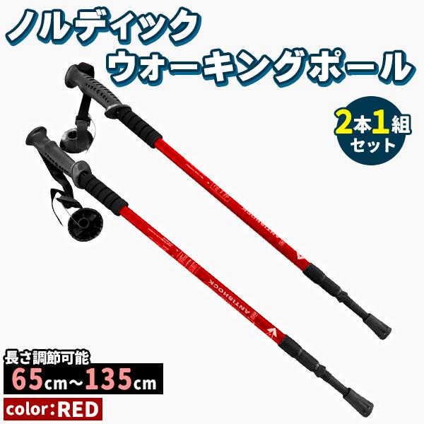 トレッキングポール 2本セット ウォーキングステッキ 伸縮 軽量 アンチショック アルミ ステッキ 杖 ノルディック ウォーキング 登山 キャンプ レッド 赤