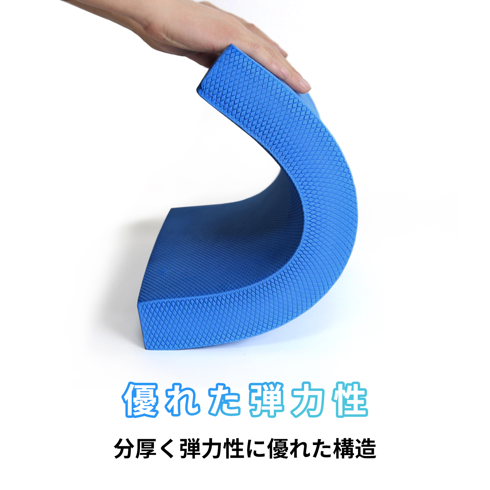 「バランス感覚を鍛える」上に立つだけでバランスパッドが沈むこみ、不安定な地面を再現することにより体幹バランス感覚の改善と強化、インナーマッスルの強化、足の筋力アップ、膝関節などの強化に役立ちます。
