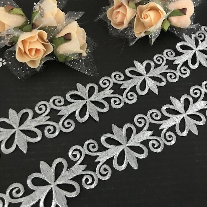 レース アップリケ アイロン用 シルバー 衣装 刺繍ワッペン ブレード レオタードモチーフ アイロンワッペン アップリケワッペン モチーフ バトントワリング