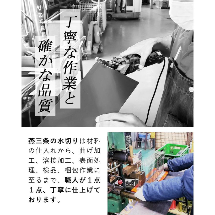「燕三条の水切り」は材料の仕入れから、曲げ加工、溶接加工、表面処理、検品、梱包作業に至るまで、燕三条の職人が1点1点、丁寧に仕上げております。