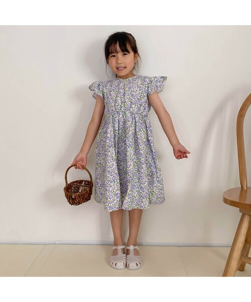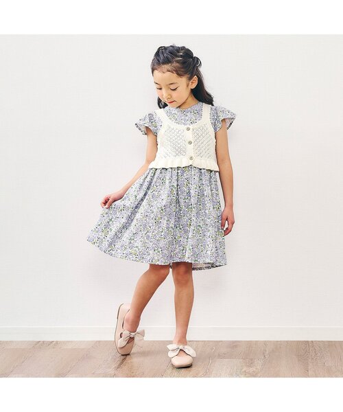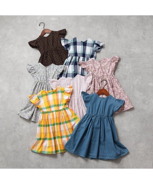 キーワード:ワンピース キッズ 子供服 女の子 ストライプ チェック ドット フレア 花柄 膝丈 無地 WEB限定 ナチュラル ベーシック 夏 新生活 保育園