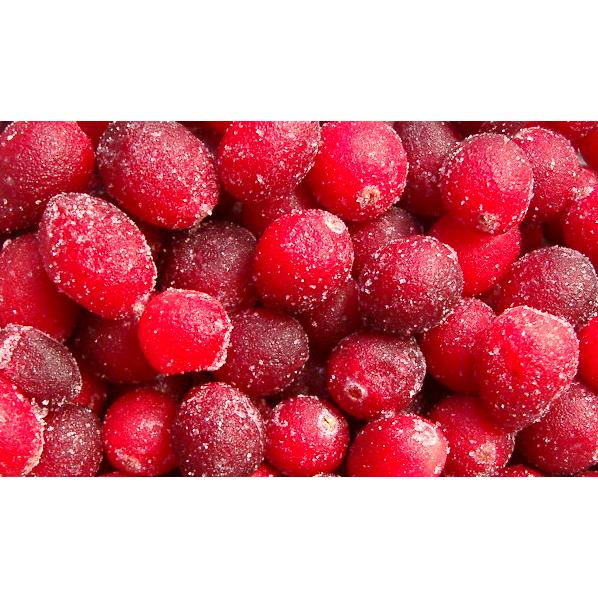 新鮮なクランベリーを洗浄した後果実の原型をとどめて冷凍する個別急速冷凍。クランベリー特有の赤色を作っているのが「アントシアニン」これは、抗酸化物質であるポリフェノールの一種です。ポリフェノールを多く含むクランベリーには活性酸素を減らす効果があると言われています。原産国:アメリカ