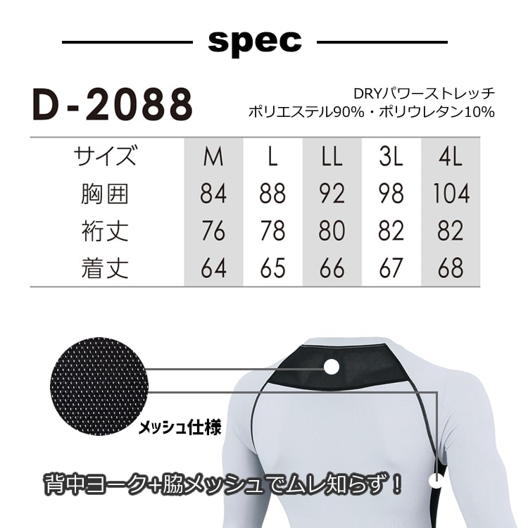 さらに背中ヨーク・脇部分はメッシュ素材で通気性が良く快適です。
