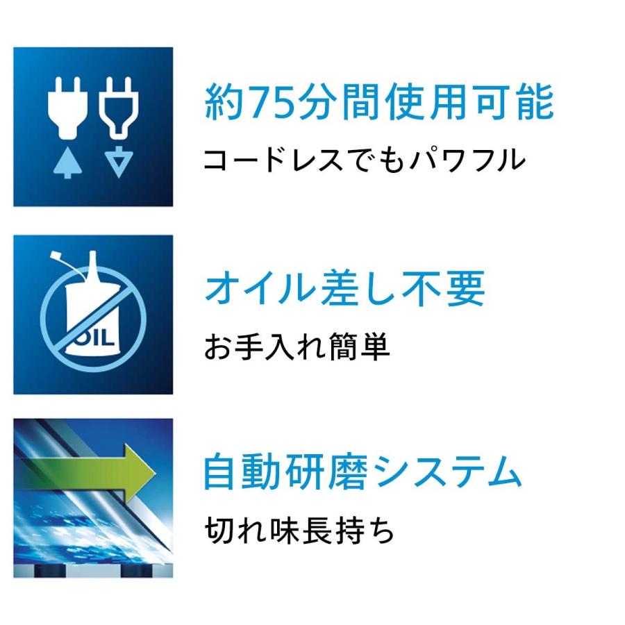 ・8時間充電で約75分間使用可能(コード付きでもコードレスでも使用可能)