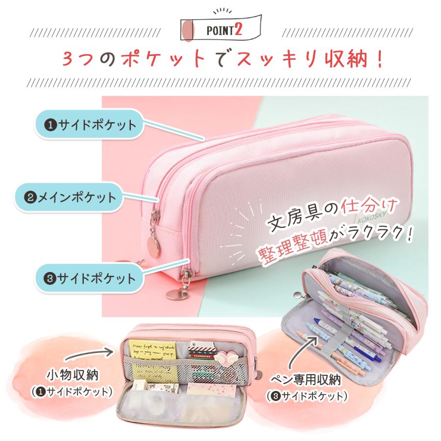 ◆3つのポケットで文房具の仕分け・整理整頓がラクラク♪