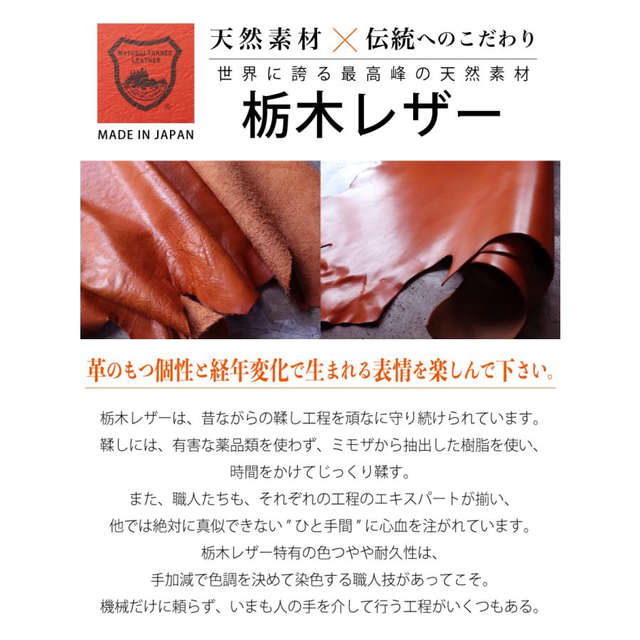 革を約2mm厚の、植物性タンニン鞣しの「栃木レザー:ジーンズ」を使用。