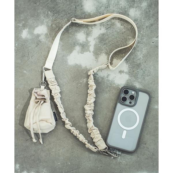 商品名:【全機種対応】スマホケースに挟むだけ! ミニ巾着ポーチ付き くしゅくしゅショルダー モバイル ストラップホルダー スマホショルダー ストラップ
