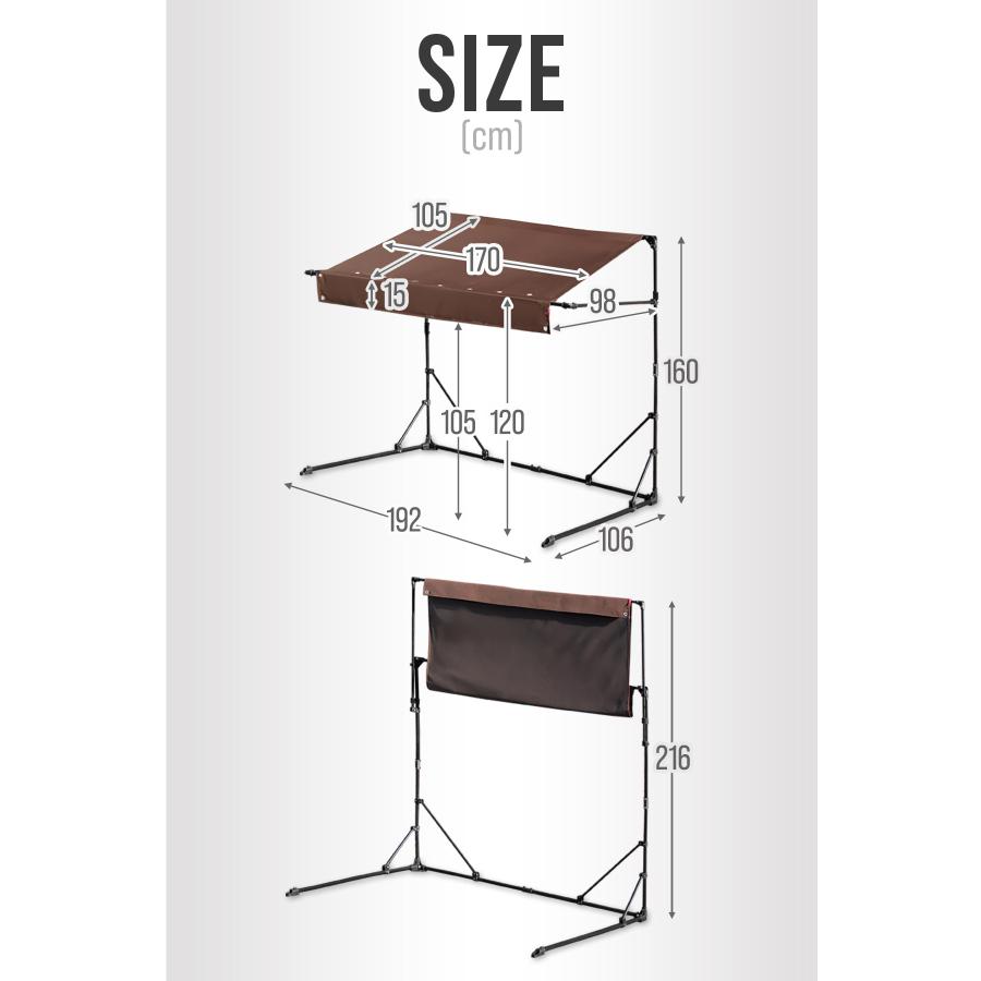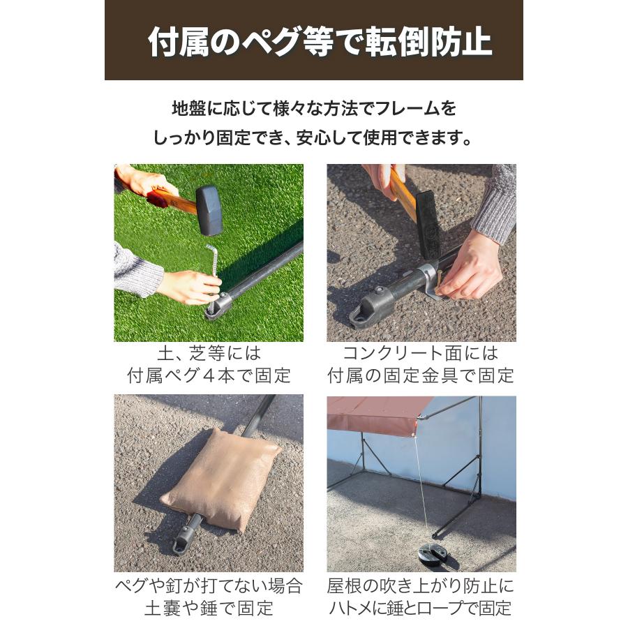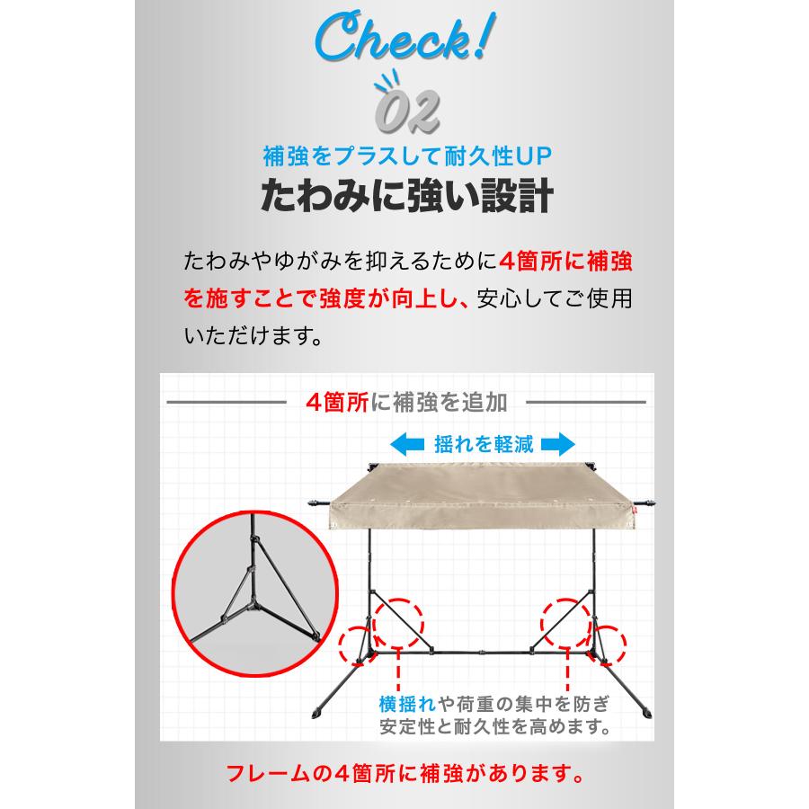 屋根カバーには強度と耐久性に優れた400デニールの生地を採用。耐候性、UV遮蔽率、防水性が高く長期間安心して使用できます。