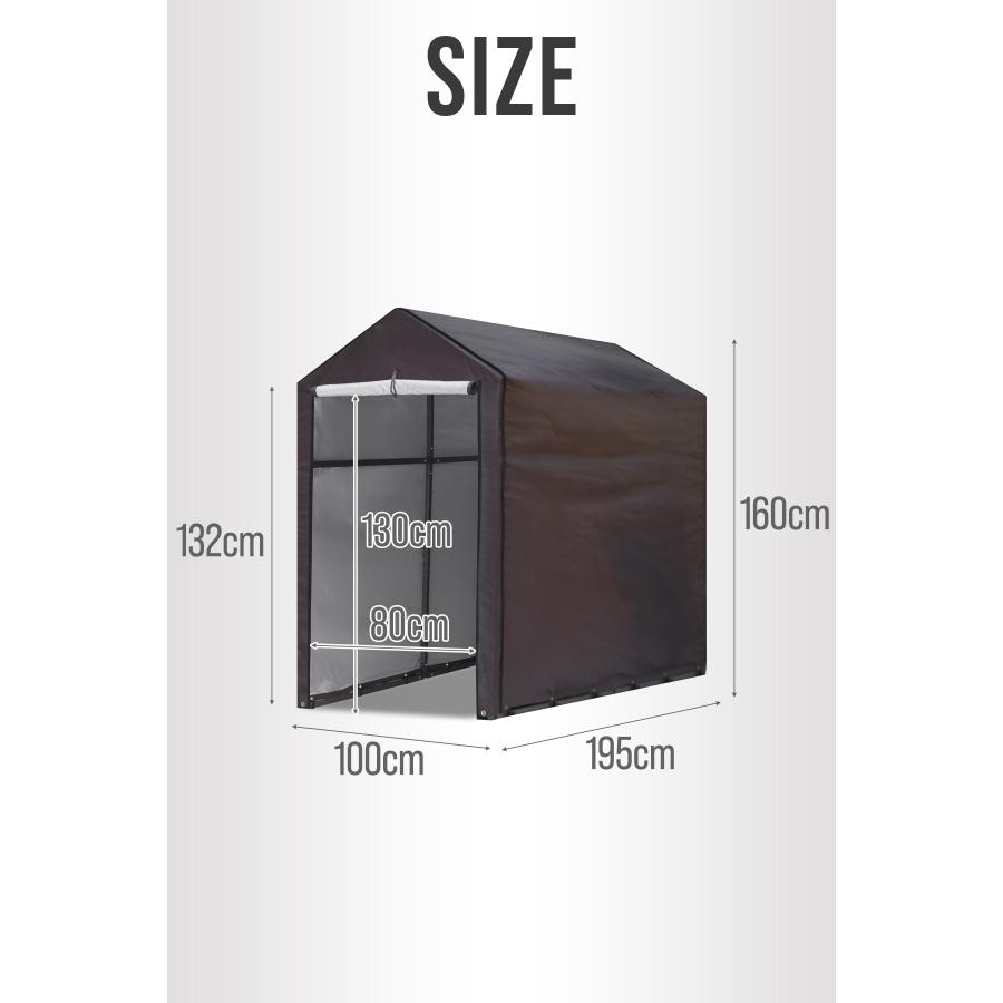 幅100cm×奥行195cm、標準サイズの大人用自転車を1〜2台収納できるサイズです。大切な愛車をしっかり収納することができます。