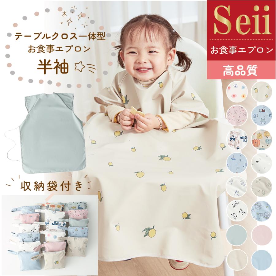 テーブルクロスとエプロンの一体型タイプ。食べこぼしが多いテーブルとの間をしっかり保護でき洋服の汚れを防ぎます。